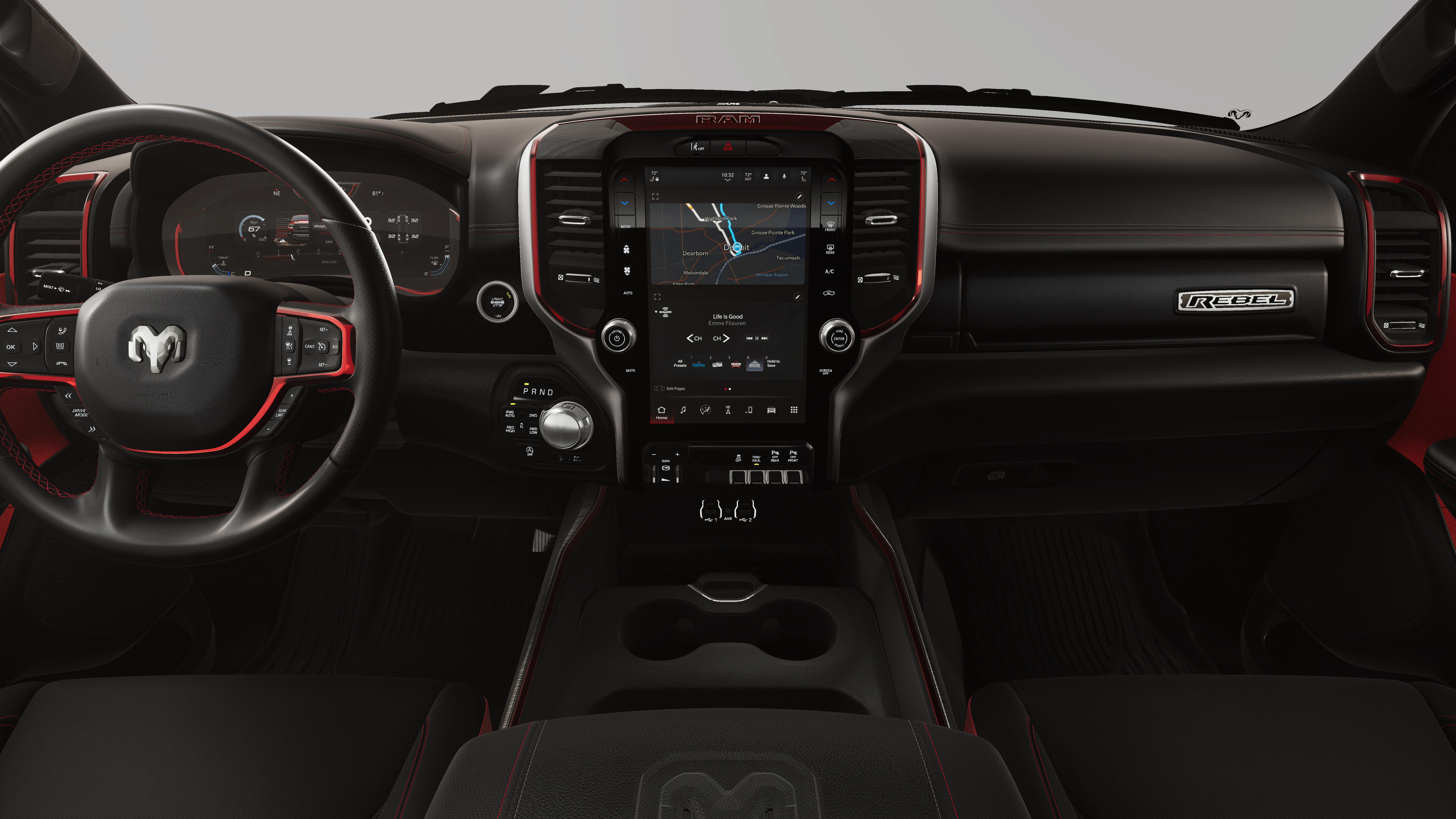 - 4-Wheel Disc Brakes w/4-Wheel ABS, Front Vented Discs, Brake Assist, Hill Descent Control, Hill Hold Control and Electric Parking Brake